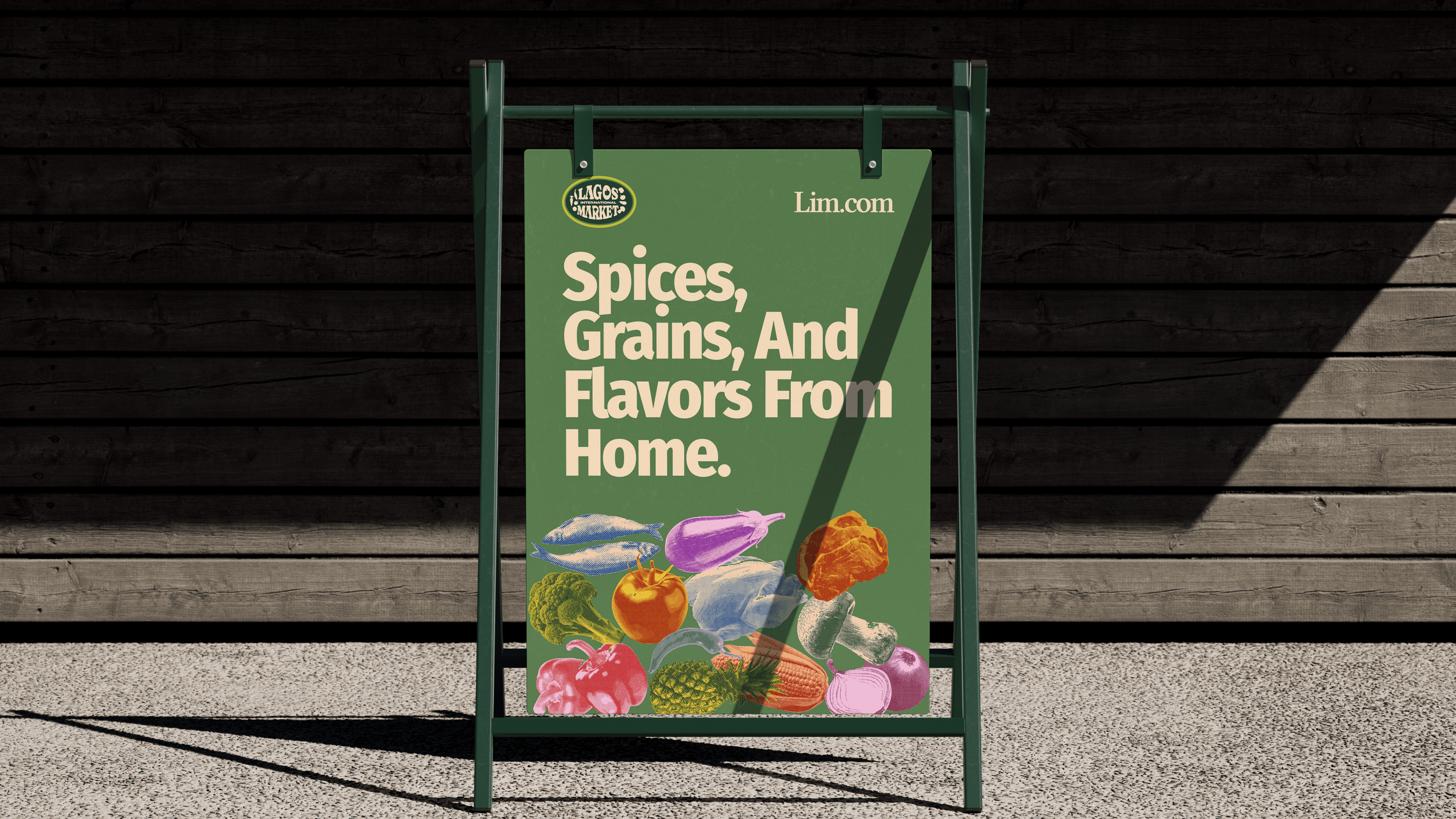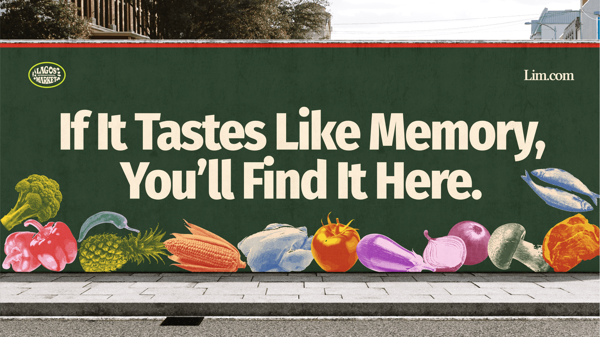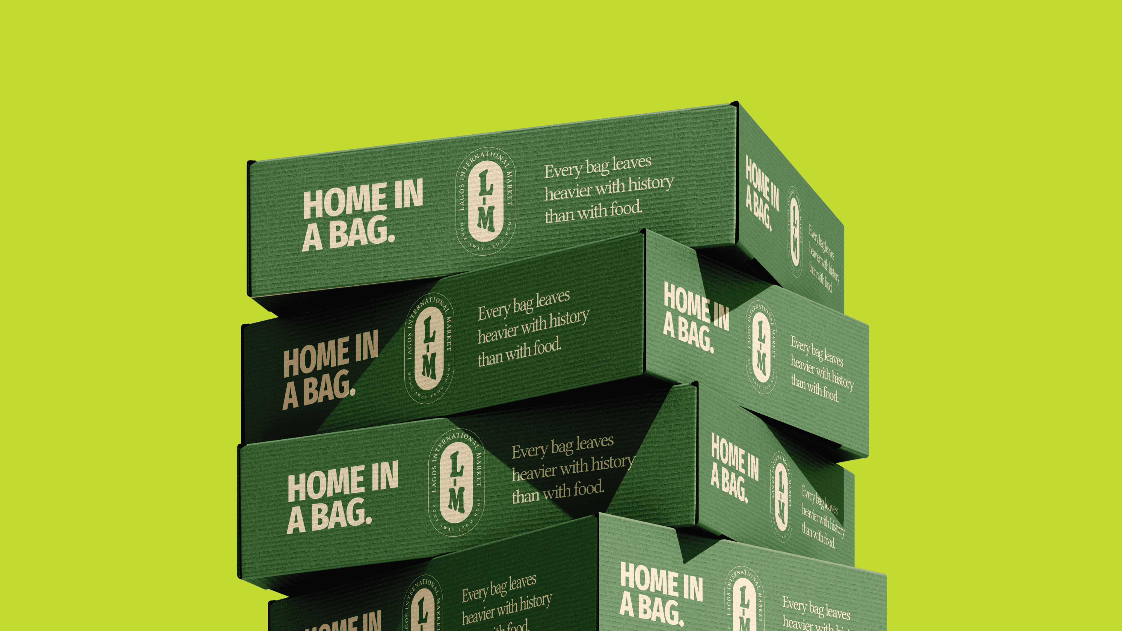 The Lagos International Market logo celebrates timeless market culture. The typography is playful yet bold, echoing the hand-painted signage of classic market stalls.