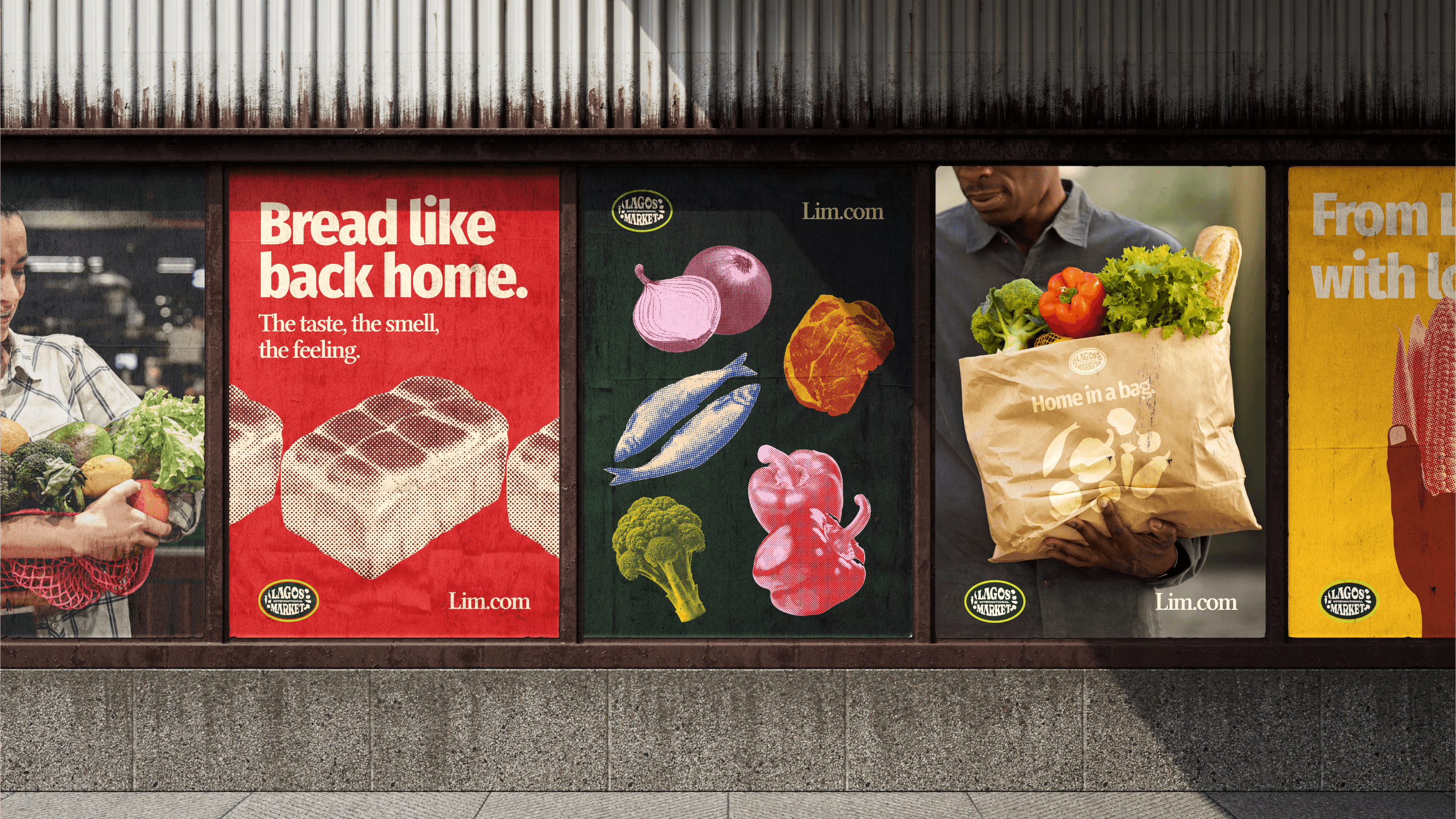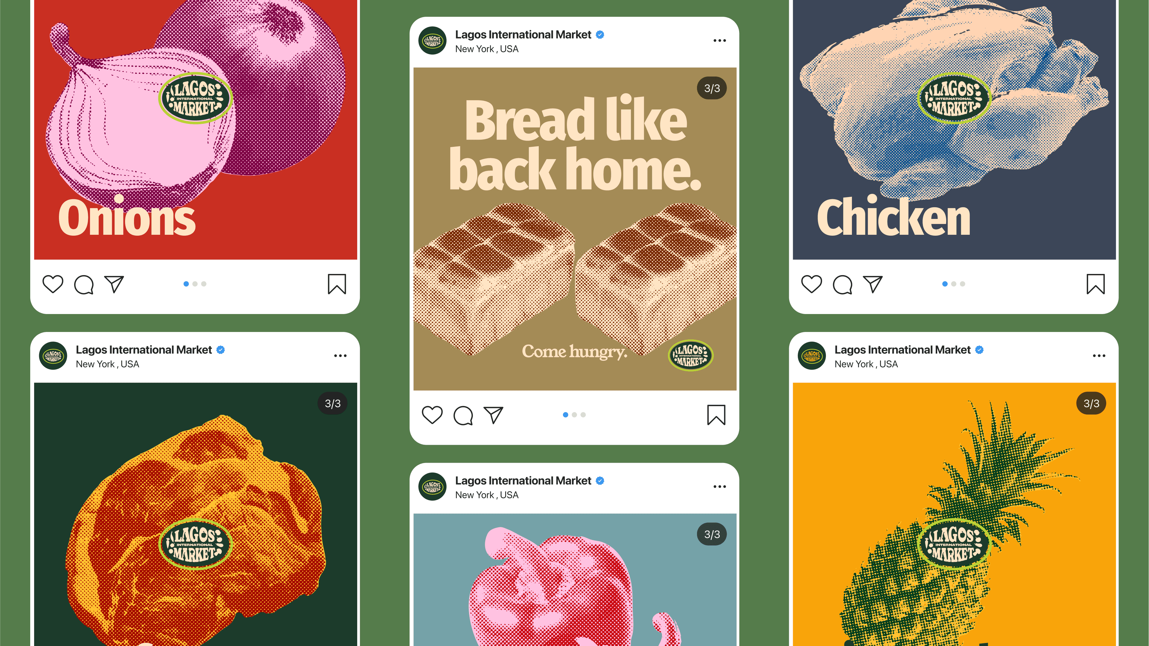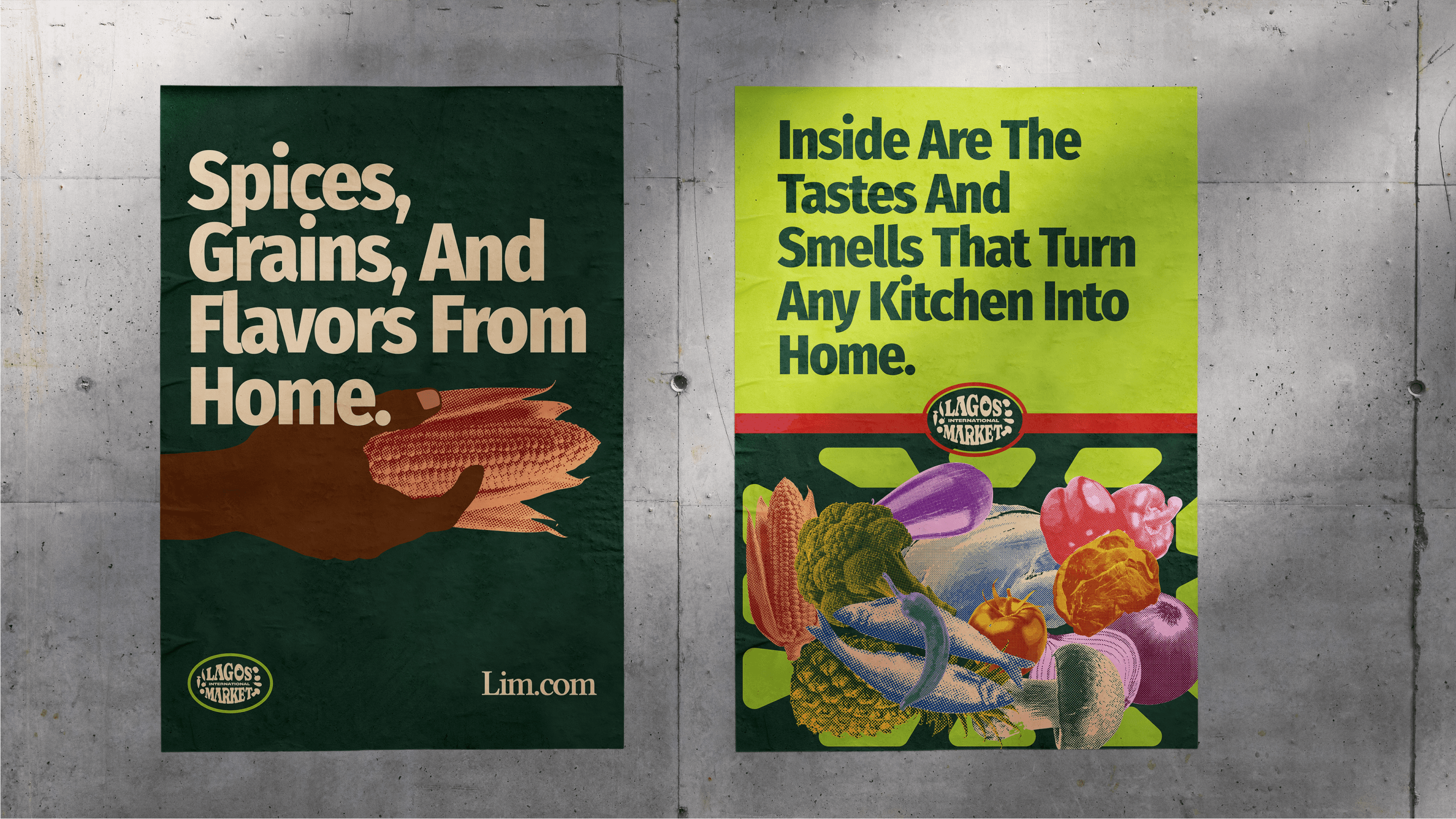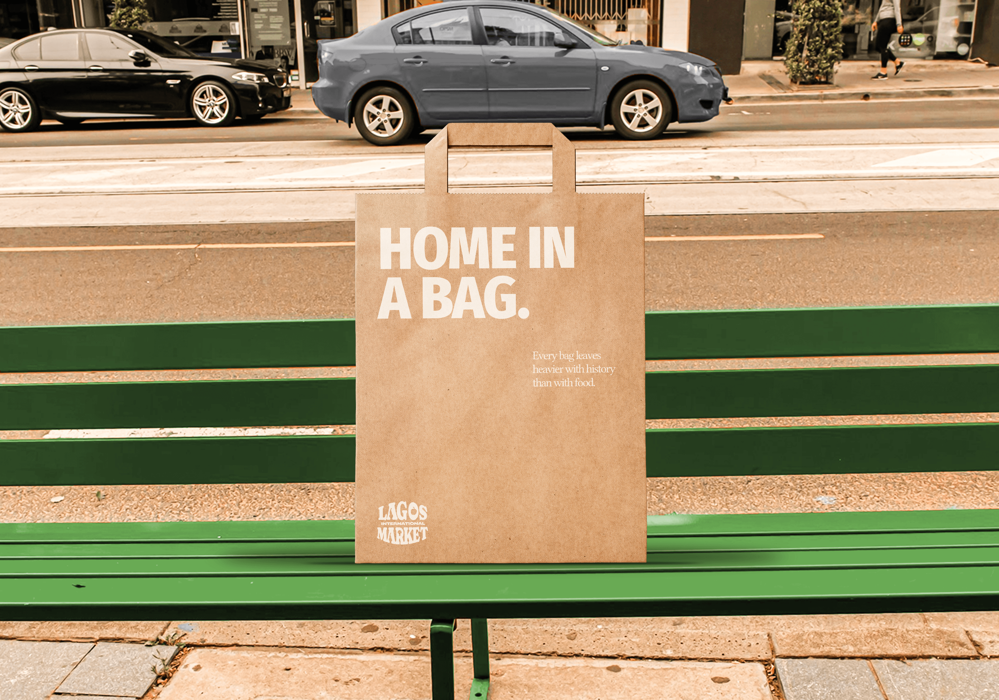 The Lagos International Market logo celebrates timeless market culture. The typography is playful yet bold, echoing the hand-painted signage of classic market stalls.