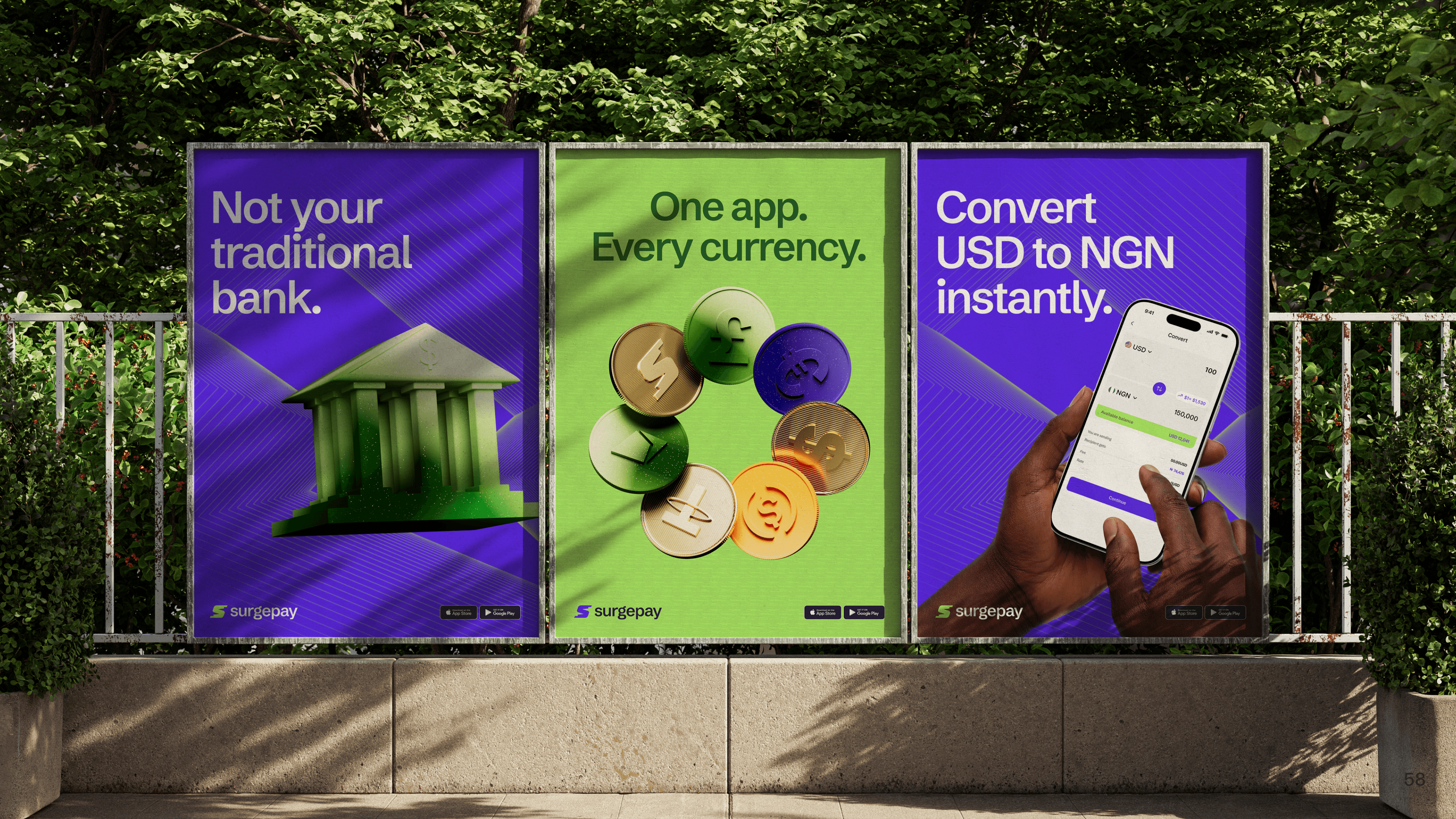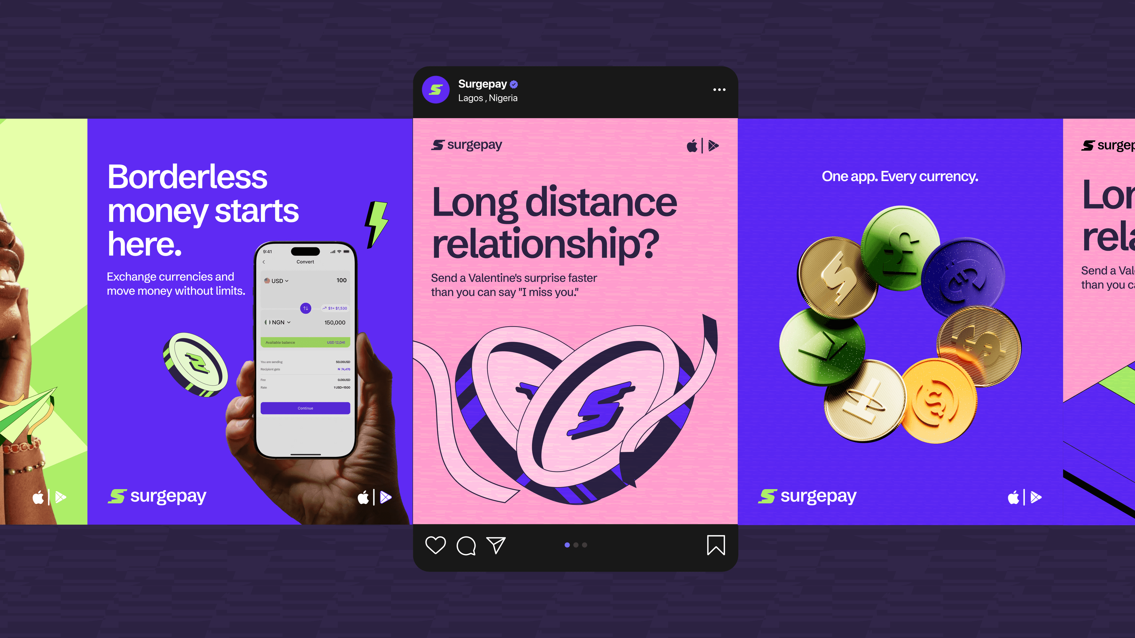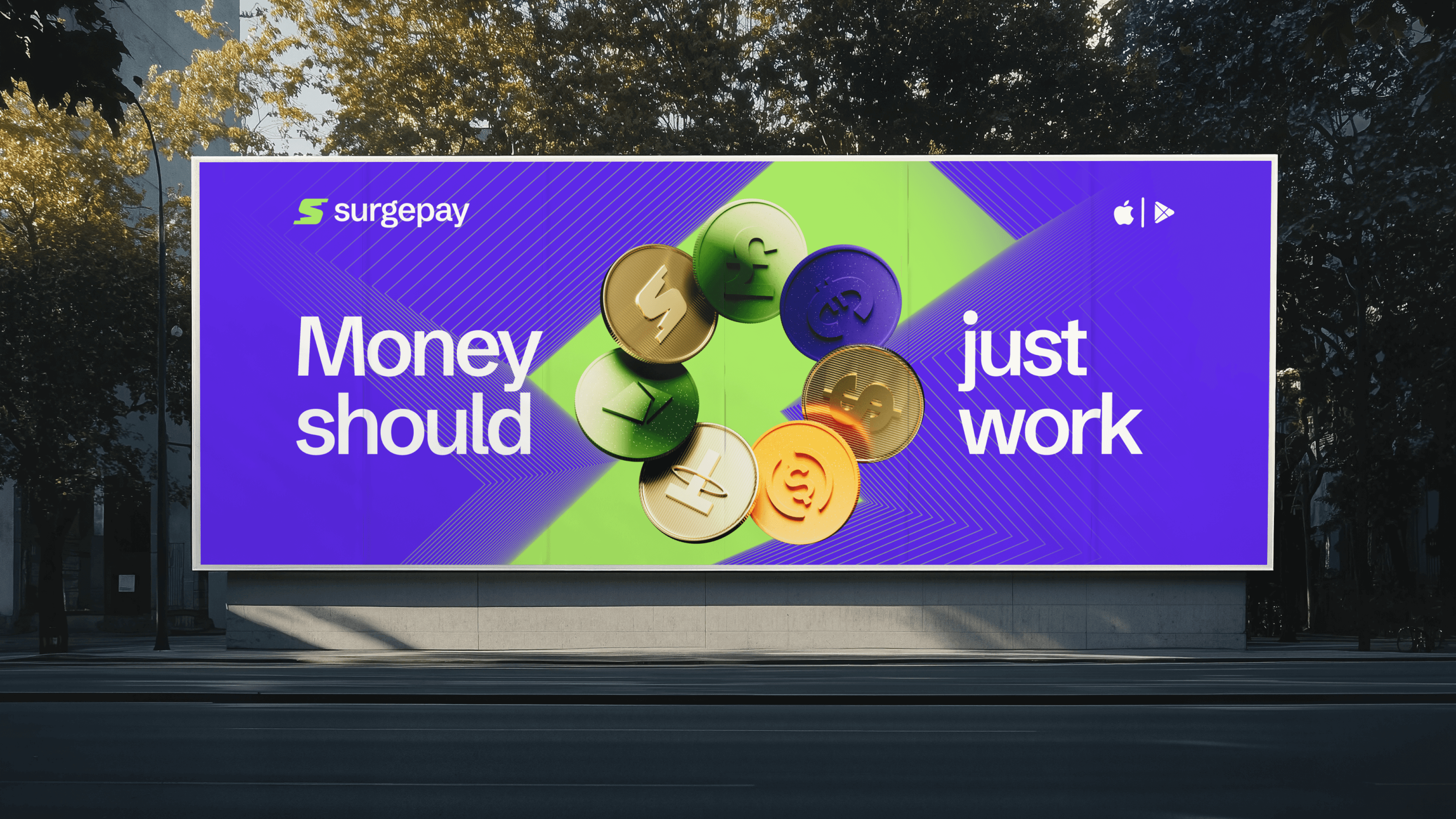 The brand promise is simple: "Money Should Just Work." No delays, no hidden fees, no complexity. We positioned SurgePay as the complete money platform, not single-purpose remittances or payments, but a comprehensive infrastructure combining receive, hold, send, and spend in one app.